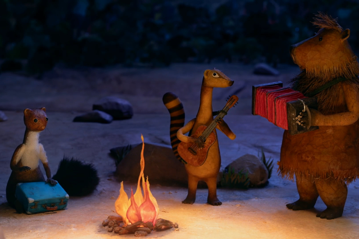 En ensam vessla strövar omkring på landsbygden och försöker sälja slipsar. Men de andra djuren är inte övertygade, för vad är ens en slips och vad ska den vara bra för? Med sin blåa väska och en gitarr på ryggen beger sig vesslan vidare in i stora skogen. Under trädens lövverk möter vesslan andra ensamma djur och snart dras hon med på ett äventyr som leder både bort och hem.